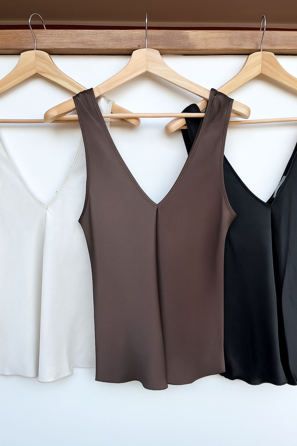 Canotta in viscosa, scollo a V anche sulla schiena, taglia unica, disponibile in tre colori